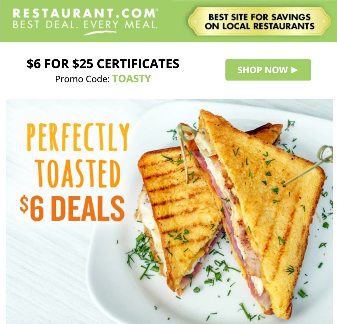 This 2-day email campaign was created by me with input from the Marketing team and sent out to Restaurant.com’s 4 million subscribers. This campaign called for animation, still image, and website banners for each day.